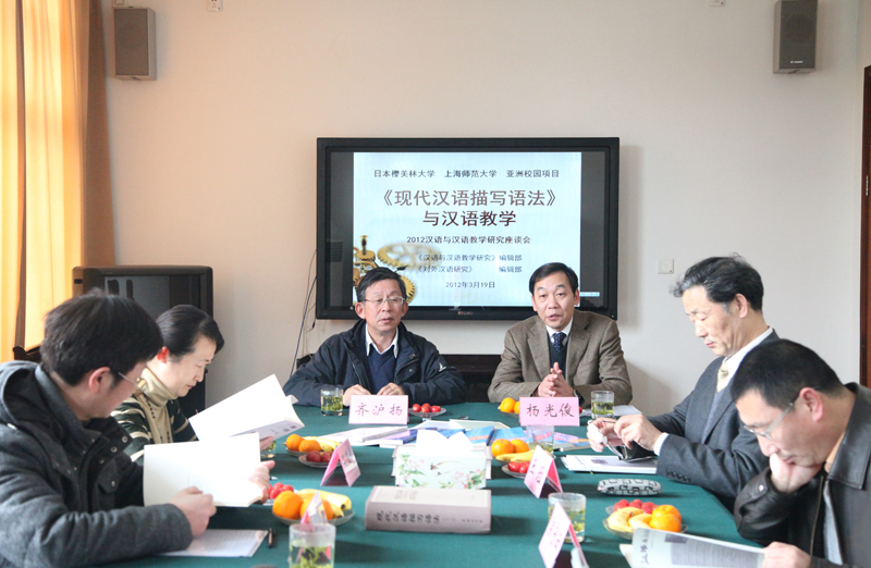 | 3月19日下午,由日本樱美林大学《汉语与汉语教学研究》杂志编辑部和我校《对外汉语研究》杂志编辑部联合举办的“2012汉语与汉语教学研究座谈会”在bat365手机版官网召开。本次座谈会的主题为“《现代汉语描写语法》与汉语教学”。 会议由日本樱美林大学《汉语与汉语教学研究》杂志主编杨光俊教授和我校《对外汉语研究》杂志主编齐沪扬教授共同主持,与会专家有上海交通大学王珏教授、复旦大学张豫峰教授、东华大学胡清国教授和我校宗守云教授等。 座谈会期间,与会专家围绕“《现代汉语描写语法》对现代汉语语法研究的作用与贡献”、“参考语法和教学语法的关系”、“汉语作为第二语言的语法应该研究什么”及“《现代汉语描写语法》对语言教学的作用”四个方面的问题进行了热烈、深刻的讨论和交流。会上,专家对我校张斌教授主编的《现代汉语描写语法》(商务印书馆,2010)一书对汉语语法本体教学与研究,尤其是对外汉语语法教学与研究的意义做出了极高的评价,认为该书全面、系统、科学地体现了现代汉语语法研究近百年来的研究成果,同时又能够与时俱进,吸收新的理论与方法,真正体现了形式与意义相结合、描写与解释相结合、结构与功能相结合、研究与应用相结合的特色,推进了描写语法的研究深度。