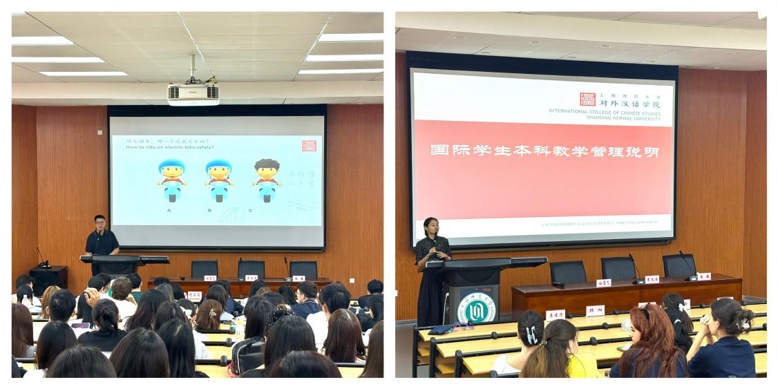为帮助国际学生更好地适应在华学习与生活,学院还安排了新生入学指导、安全宣讲及本科生新生见面会。韩阳老师结合实际案例分享了实用的学习、生活建议,助力国际学生快速适应在华生活。他叮嘱同学们要增强安全防范意识,筑牢安全底线。胡霜霜老师与本科新生进行了互动交流,并详细讲解了本科生课程方案、学术规范和学籍管理规定。